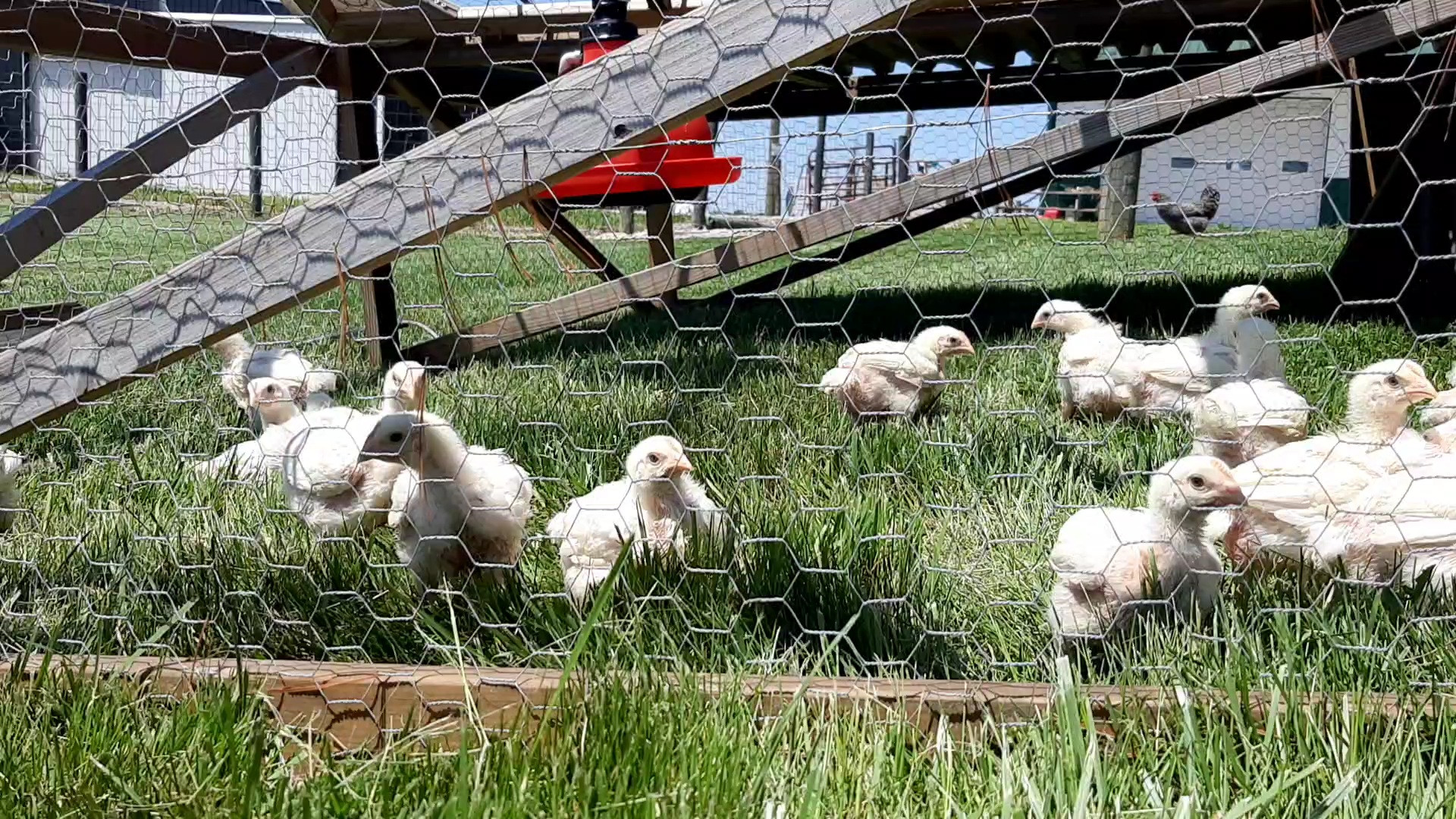 The chicks feathers have come in and can handle the weather. Watch as we move them to pasture.